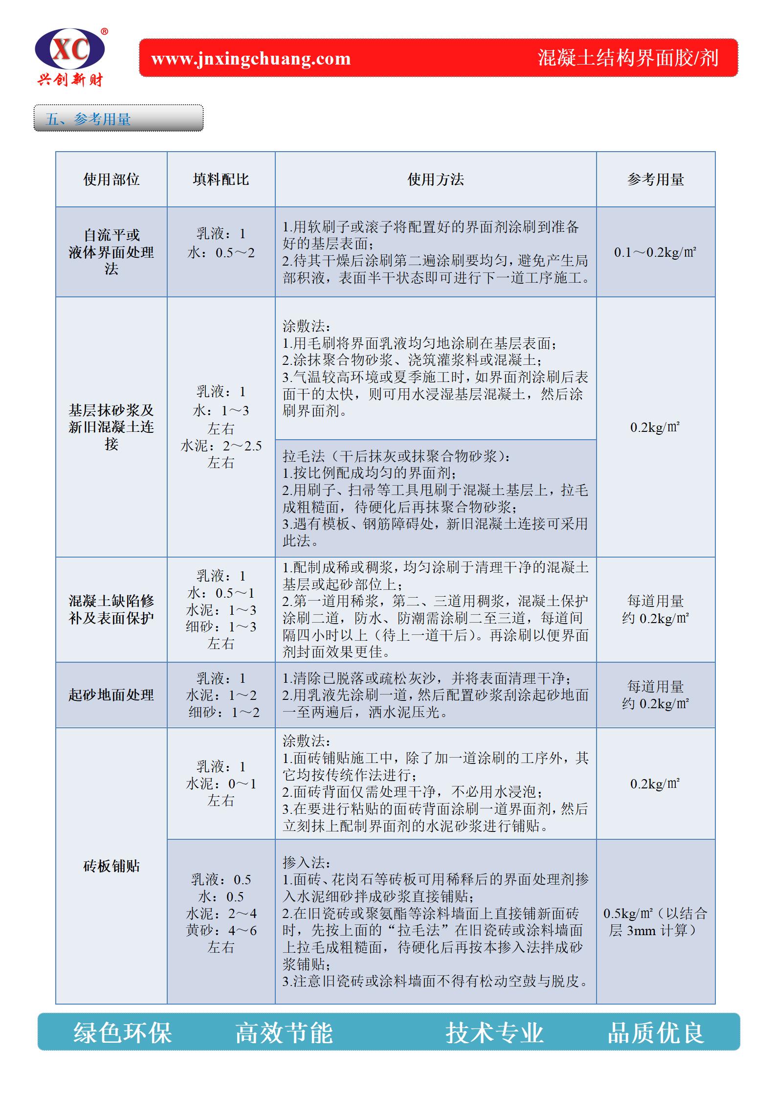 結構界面膠粘劑分為兩類:1、單組份界面劑,是一種具有超強粘結力的高性能單組份界面粘結、增強劑,產品具有封閉性好、滲透性強、拉毛強度高、無毒無污染、無輻射、綠色環保等優點,可提高基層表面強度及密實度,符合環保要求,可按照一般物品運輸,主要施工方法采用涂敷處理工藝,施工簡便、用量少,因而在舊建筑改造、防 潮防水、二次灌漿或抹灰等領域得到廣泛使用。 2、雙組份界面劑主要以水乳環氧為基材,配合高分子聚合物合成的無機材料,本品可與多種基材如光面混凝土、飾面磚板、金屬、木材、塑料等有突出的粘結力,耐水、耐濕熱、耐凍融性能優良,即可在潮濕的基層施工,有無毒性污染,而且由于采用涂敷、拉毛、摻入法處理工藝,施工方便,因而在建筑裝飾、舊建筑改造、防潮防水及有特性要求的項目等領域得到廣泛